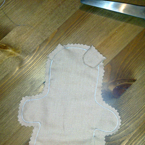 You'll notice on my template I've marked where to leave a hole for each ear and a hole to allow me to reverse and then stuff the teddy. You'll need to mark these on your template too. The ear holes will, naturally, be the same width as the ear and the side hole just needs to be big enough to allow you to turn the finished teddy in the right way and also allow you to get your fingers inside to position the stuffing.